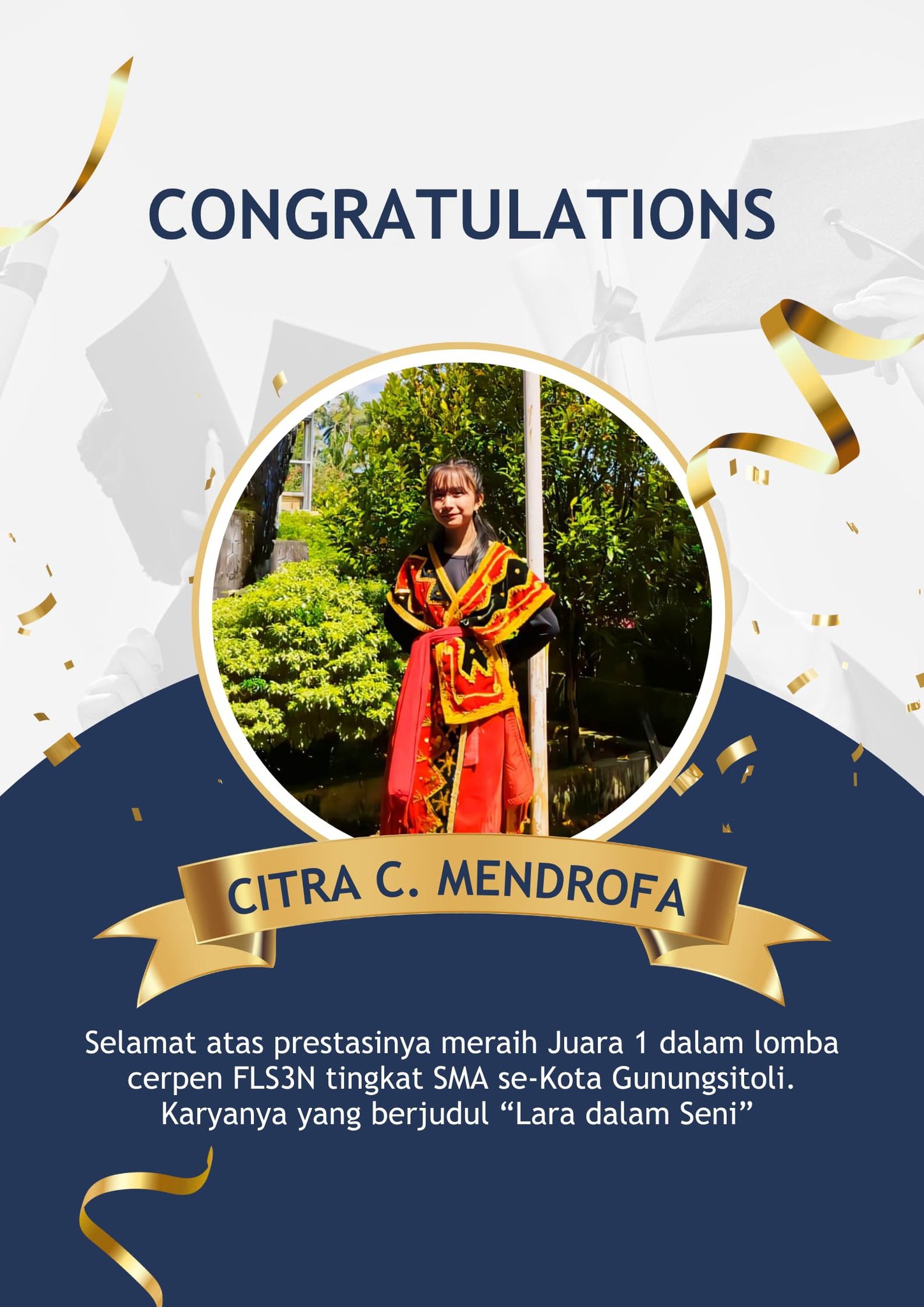 Semangat tidak mengkhianati hasil, itulah yang dirasakan oleh siswa SMA Negeri 2 Gunungsitoli bernama “CITRA CLARESTA MENDROFA” dengan prestasinya meraih Juara 1 dalam cabang lomba Cerita Pendek FLS3N tingkat SMA se-Kota Gunungsitoli. Karya tersebut berjudul “Lara dalam Seni”.